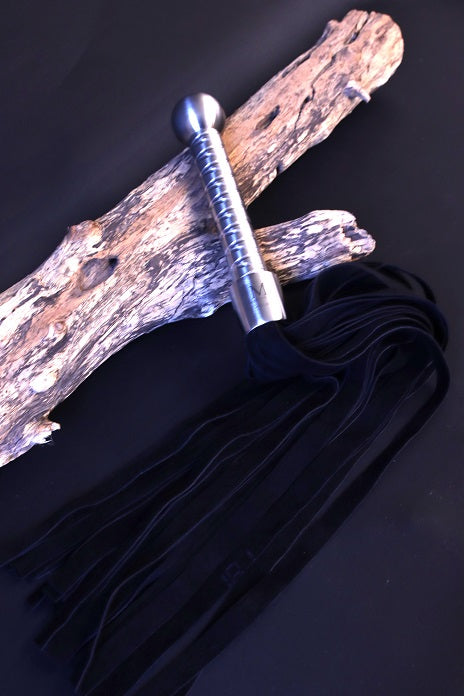 Verführerischer Flogger mit luxuriösem Veloursleder und elegantem Edelstahlgriff