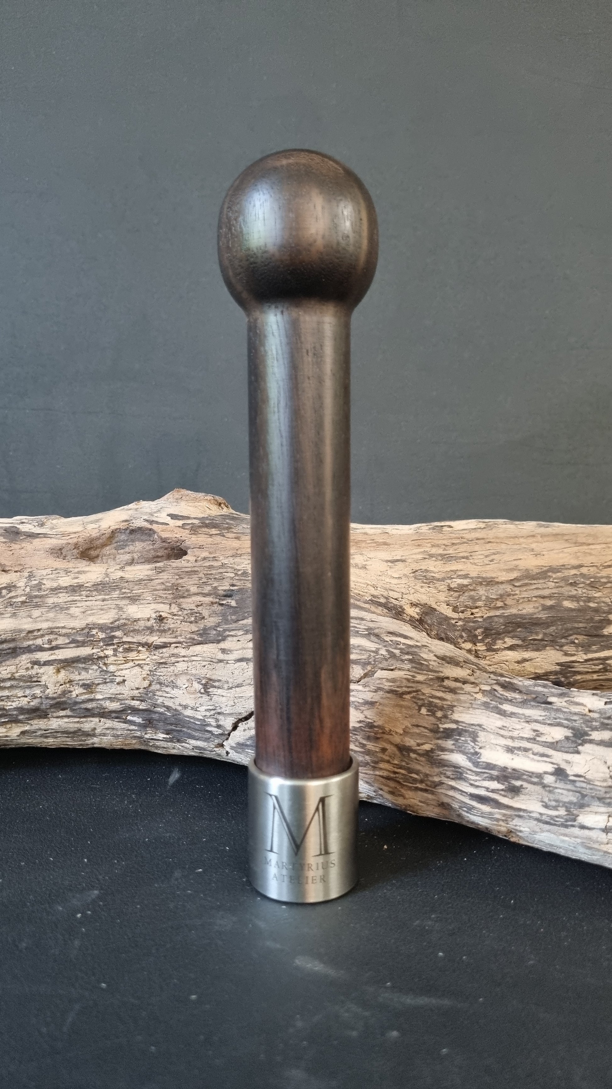 Griff für Wechselsystem mit gedrechselter Kugel aus geräuchertem Eukalyptus Holz
